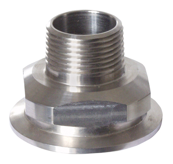 Adapts 2" Tri-Clover fitting to 1" Male Pipe Thread. 304-type stainless steel.