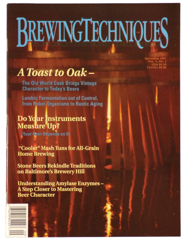Volume 5, No. 4This issue contains:-A Toast to Oak-Lambic Fermentation Out of Control, From Rebel Organisms to Rustic Aging-Do Your Instruments Measure Up?-Cooler Mash Tuns for All-Grain Home Brewing-Understanding Amylase Enzymes - A Step Closer to Mastering Beer Character